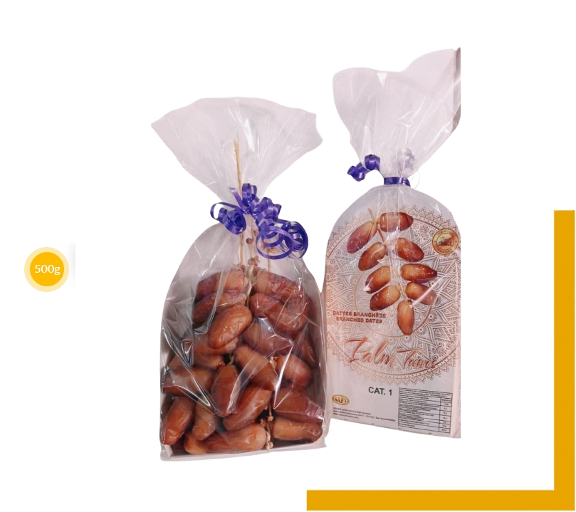 Selected according to their size and texture, standard dates are dates that are in their natural state, clipped off from their branches.
